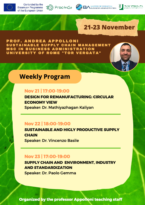 - 21 November from 17:00 to 19:00 - Design for remanufacturing: circular economy view - Prof. Mathiyazhagan Kaliyan _ Thiagarajar School of Management Madurai - India